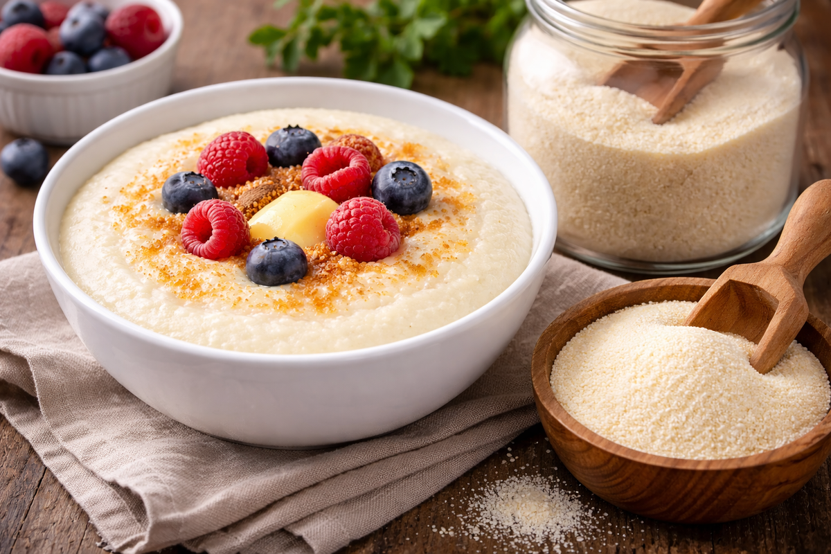 Манка - не только каша из детства. Ее используют для создания золотистой корочки на запеканках, панировки рыбы и овощей, а также для приготовления «ленивого теста», которое не требует долгого замеса. Добавление манки в кремы и варенье помогает добиться нужной консистенции без лишних добавок.
