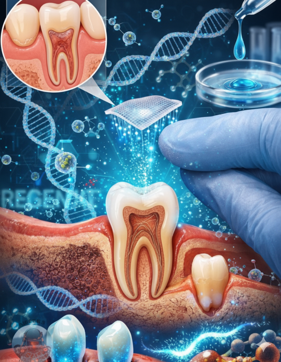 Южнокорейские учёные создали патч с микроиглами, который доставляет под десну тайделгусиб (блокирует белок, мешающий росту зубов) и факторы роста (будят стволовые клетки).