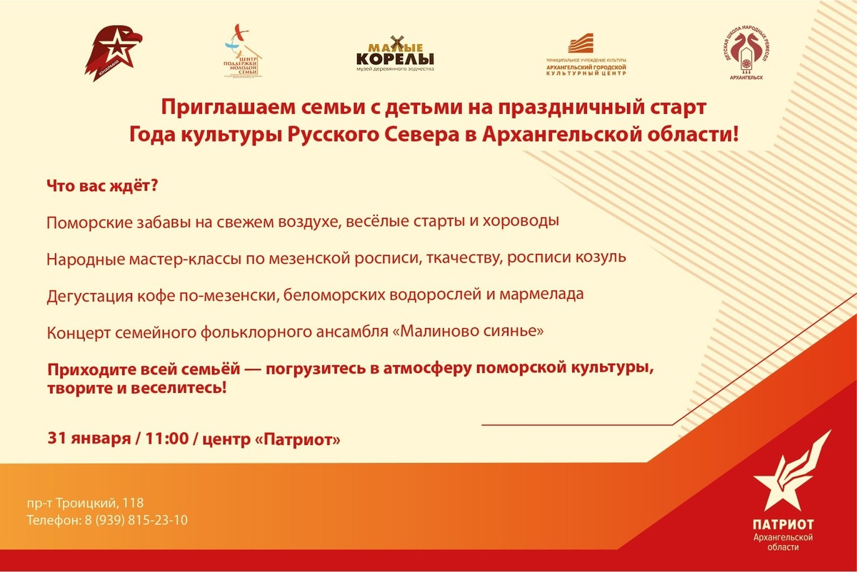 Приглашаем семьи с детьми на праздничный старт Года культуры Русского Севера в Архангельской области