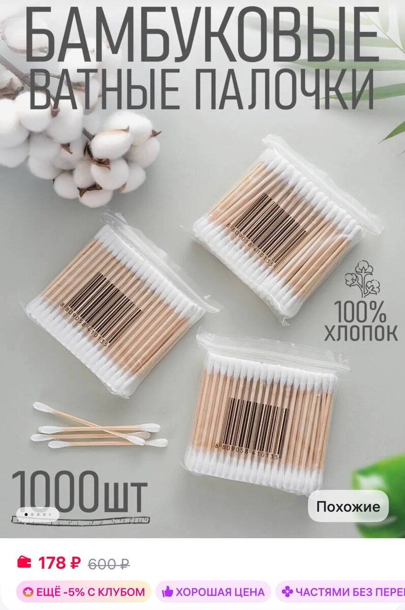😀😀😀 1000 шт Ватные палочки бамбук и хлопок