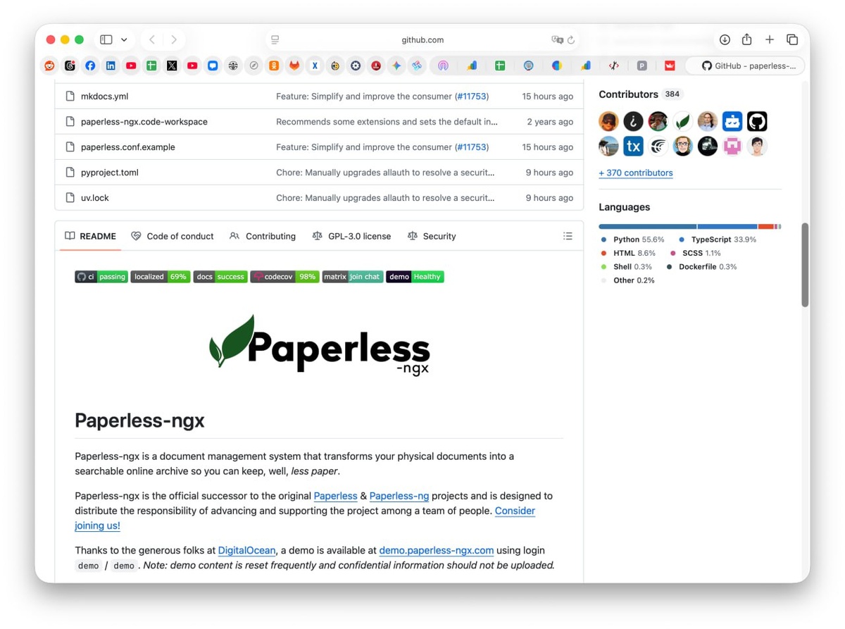 Сервис использует оптическое распознавание символов чтобы читать содержимое сканов и раскладывать их по виртуальным папкам. Проект уже пережил 138 релизов! Вот здесь. Для установки лучше всего использовать Docker на собственном домашнем сервере поскольку хранить файлы в открытом виде на чужом хостинге довольно рискованно :) Русский ИТ бизнес