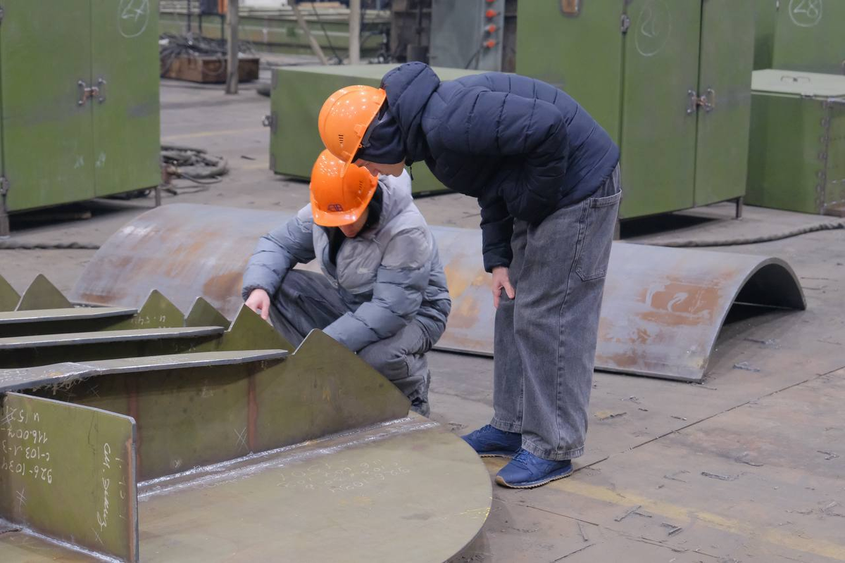 Сегодня для студентов третьего курса учебные аудитории сменились на гулкое, наполненное ритмом производства пространство 47-го корпусосборочного цеха. Это полноценное погружение в стихию будущей профессии, где теория ловко и наглядно превращается в живое, мощное дело. Ребята своими глазами увидели, как из массивных листов металла рождается основа будущих судов — те самые конструкции, от которых будет зависеть надёжность и долговечность морских гигантов. Такой формат — мостик между институтской скамьёй и реальным производством. Он помогает будущим специалистам не только быстрее освоиться в профессии, но и буквально почувствовать её масштаб, вес и ответственность. Заместитель начальника цеха лично провёл для гостей подробную экскурсию, показав весь технологический путь обработки металла. Студенты прошли по цепочке: от момента, когда сталь проходит тщательную очистку и дробеструйную обработку, удаляющую малейшие следы коррозии, до этапа покраски, которая обеспечит защиту на долгие годы.