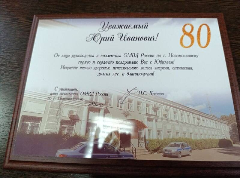 Накануне ветеран МВД Новомосковска Юрий Иванович Платонов отметил 80-летний юбилей. Любимому делу Юрий Платонов отдал 27 лет. В своей должности участкового инспектора он «вырос» от сержанта до майора. Юрий Иванович имеет массу наград за службу, среди которых медали МВД «За безупречную службу» всех трех степеней. Звание-знак «Заслуженный участковый инспектор милиции» в 1988 году в Москве ему вручил министр внутренних дел СССР Вадим Бакатин. Сегодня юбиляра чествовали в администрации Новомосковска. Старшего участкового инспектора поздравили как действующие сотрудники городского ОМВД, так и ветераны полиции. Глава МО город Новомосковск Алексей Платонов поздравил юбиляра от лица Собрания депутатов Новомосковска и вручил ему Почетную грамоту и памятные подарки. Также Юрия Платонова поздравили ветераны МВД: Владимир Стрельцов, Александр Мельхер, Сергей Аксенов.