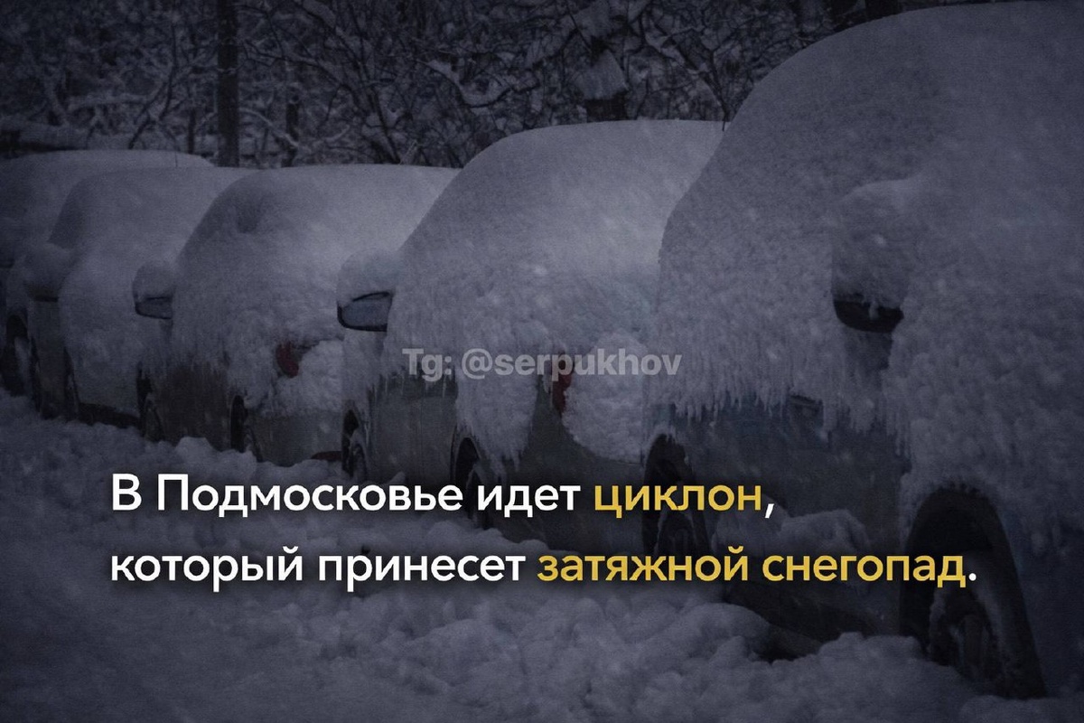 "С полуночи вторника, 27 января, до 12:00 мск четверга, 29 января, в Москве ожидается продолжительный сильный и очень сильный снег, гололедица, снежные заносы" заявил сотрудник Гидрометцентра. Только за одну ночь в столичном регионе может выпасть до 15 см снега, порывы ветра усилятся до 15 м/с, на дорогах — сложные условия. В связи с этим объявлен жёлтый уровень погодной опасности: в Москве — на 27 января, в Подмосковье — с вечера 26-го до 28 января. ➡️ Метеорологи объясняют происходящее сменой антициклона: морозы отступают, с запада приходит более тёплый и влажный воздух, отсюда и снегопад. Вопрос только один: как будем справляться со снегом у себя, ведь по слухам, из 73 снегоуборочных тракторов в нашем городе осталась работать только треть. 🦚 @serpukhov
