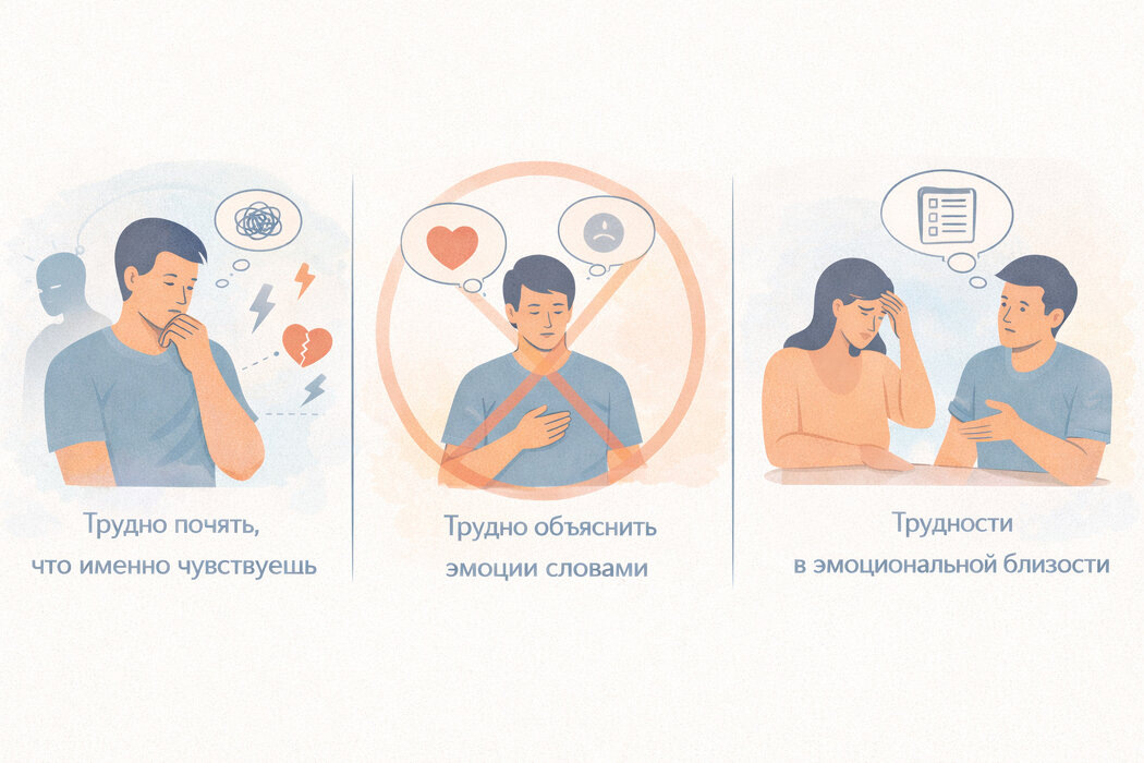 Алекситимия: этих людей называют «люди без чувств» или люди, которые не умеют их распознавать. Сифнеос ввоодя эту концепцию имел ввиду немного другое. Фраза «алекситимия люди без чувств» звучит эффектно, но по сути не совсем верна. У большинства людей с алекситимией чувства есть. Проблема в другом, они плохо их понимают и распознают, что именно чувствуют, и не умеют это назвать. Поэтому со стороны может казаться, что человек холодный или равнодушный, а внутри у него часто просто нет слов и навыков для их выражения. Что это такое по сути? Алекситимия - это трудность распознавать эмоции, отличать их друг от друга и связывать с ситуацией и плюс трудность говорить о переживаниях. Вместо «мне тревожно» человек говорит «я не в форме», «меня колбасит», «у меня давление», «что-то не так». Вместо «я злюсь» - «мне неприятно», «раздражает», «надо бы успокоиться». Эмоция прячется за общими формулировками и телесными жалобами. Как это ощущается изнутри? Чаще всего как неопределенное «плохо». Есть н