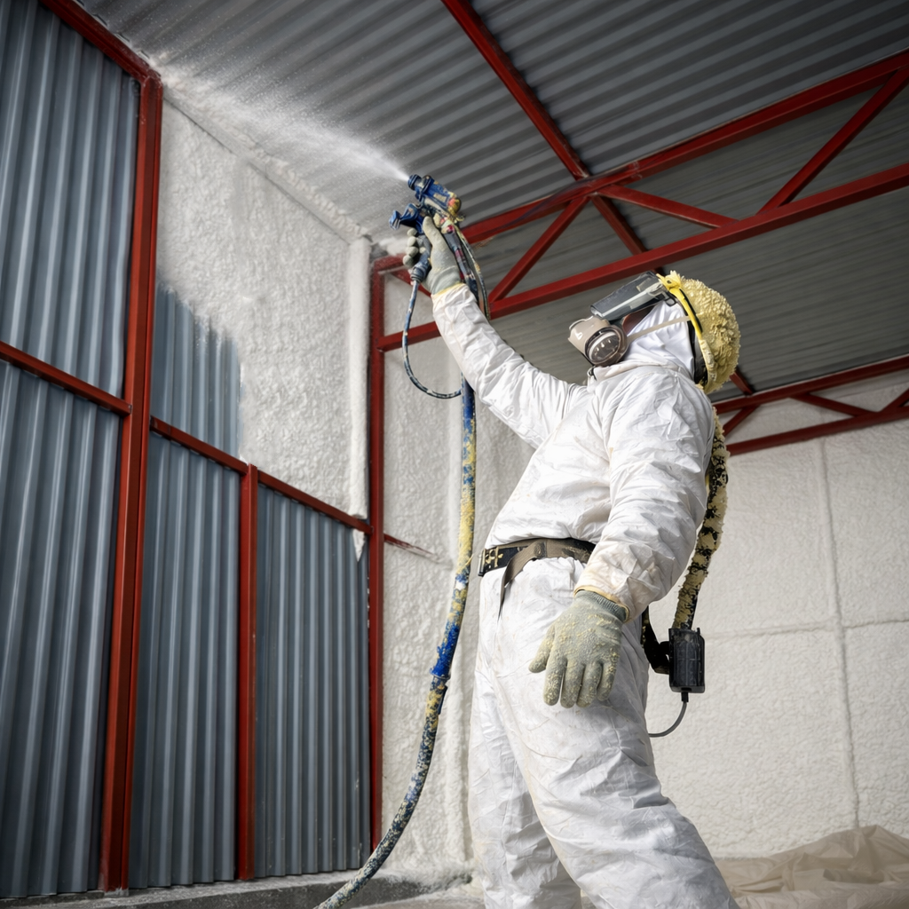 Гараж размером 6×12 метров, высота стен - около 3 метров. Каркас металлический, снаружи обшит профлистом и сайдингом. Крыша односкатная. Внутри планируется мастерская и покрасочный участок с тёплыми полами. Задача - сделать тёплое помещение, пригодное для работы круглый год. Так как гараж будет использоваться не только для хранения машины, а как рабочее помещение, требования к утеплению почти такие же, как у жилого дома. Тонкий слой утеплителя здесь не подойдёт - тепло будет быстро уходить через стены и крышу. Для этого гаража оптимальным решением стало: Такой вариант позволяет держать стабильную температуру зимой и не перегружать систему отопления. Напыляемая пена хорошо ложится и на металл, и на плёнку, образуя сплошной слой без зазоров. Это важно, потому что: Пена заполняет все пустоты и сразу работает как теплоизоляци