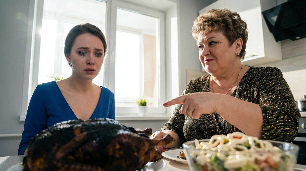 Виктор посмотрел на почерневшую утку. Потом на испорченные тарталетки. Потом на жену, у которой в глазах стояли слезы обиды. И, наконец, на мать, которая стояла руки в боки, всем своим видом излучая правоту.