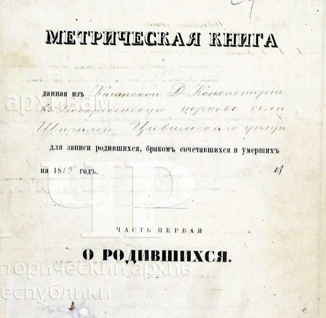 Село Шигали Воскресенские. Метрическая книга о родившихся за 1863-1880 гг. 1 января 1863 — 31 декабря 1880 ГИА Чувашской Республики (ГИА ЧР), фонд № 557, опись № 7, дело № 279, стр. 299 скан. Метрическая книга, данная из Казанской Духовной Консистории в Воскресенскую церковь села Шигалей Цивильского уезда для записи родившихся, браком сочетавшихся и умерших на 1869 год. Часть первая. О родившихся. Стр. 335 скан. Ноябрь. № 112. 2 числа родилась. 6 числа крещена. Александра. Родители: Села Шихазаново отставный унтер-офицер Иван Савельев и законная жена его Прасковья Феодорова, оба православного исповедания. Восприемники: Симбирской губернии Буинского уезда деревни Шаймурзиной умершего казенного крестьянина Филипа Гаврилова жена Анастасия Петрова. Таинство крещения совершил: Священник Капитон Подобедов. Дьячек Димитрий Тихонравов. https://yandex.ru/archive/catalog/20880962-3946-4655-a564-9eb4d667a0d4/335