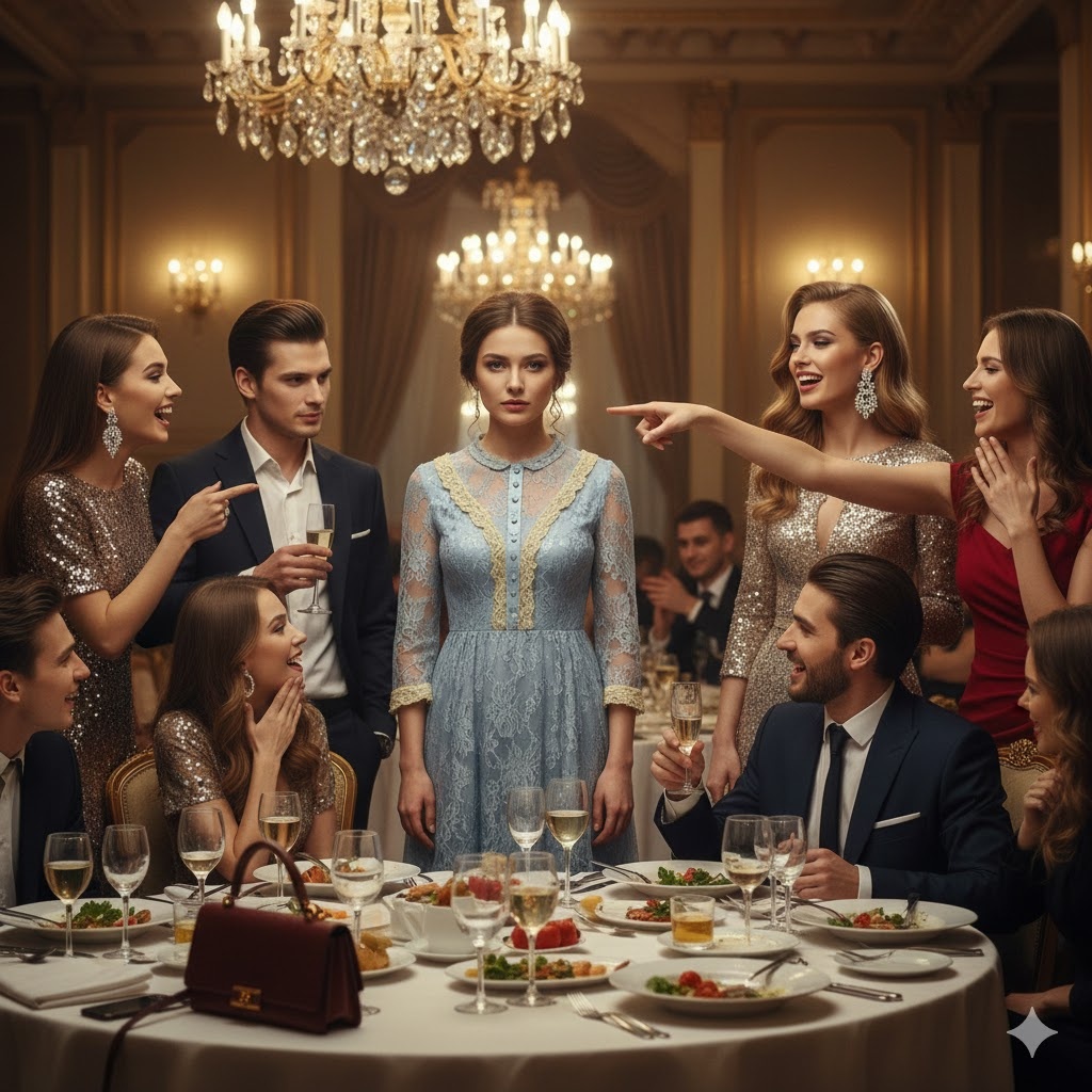 Когда Алиса вошла в зал, музыка на мгновение показалась ей слишком громкой. За центральным столом уже собралась «элита». Кристина — бывшая королева школы, теперь жена местного депутата — сидела в центре, сверкая бриллиантами, которые могли бы оплатить Алисе пять лет аренды. Рядом с ней вальяжно расположился Стас, первая любовь Алисы и её же главный палач.