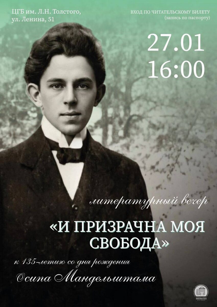 » 15 января родился Осип Мандельштам — поэт, литературовед, один из виднейших представителей Серебряного века. К юбилею писателя мы приглашаем на лекцию, где расскажем о жизненном и творческом пути этого выдающегося творца с трагической судьбой. На мероприятии будут интересные факты из биографии Осипа Мандельштама и декламация его стихотворений. • Участие бесплатное • Онлайн-регистрация по ссылке: vk.cc/cTzMgj 👉 Когда? 27 января в 16:00 👉 Где? Севастополь, ул. Большая Морская,51 , Библиотека им. Л.Н.Толстого ✨Давай сходим, Севастополь | Читайте и смотрите нас в МАХ
