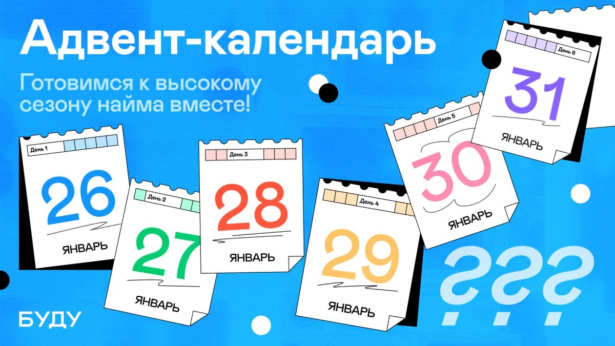 🫂 В феврале стартует высокий сезон прайма найма — время, когда вакансий становится больше, и можно найти ту самую работу мечты, которую вы загадывали в новогоднюю ночь. Мы в БУДУ подготовили адвент-календарь для соискателей: в нём вы найдёте всю самую важную информацию о поиске работы, составлении резюме, написании сопроводительных писем и подготовке к собеседованию. Если ваши новогодние праздники прошли без открытия адвент-календарей, мы готовы это исправить! Но ждать следующих праздников совсем не хотим 😣 Каждый оставшийся январский день будем вместе открывать одну новую ячейку и потихоньку готовиться к отправке откликов ✅ Кстати, первое окошко нашего адвент-календаря появится на канале уже сегодня — следите за обновлениями 🙁 День 1 — Где искать работу? День 2 — Как отправлять отклики? День 3 — Как составить резюме? День 4 — Как писать сопроводительное письмо? День 5 — Как подготовиться к собеседованию? День 6 — Как пережить поиск работы? Но сначала выпустим подборку ваканс