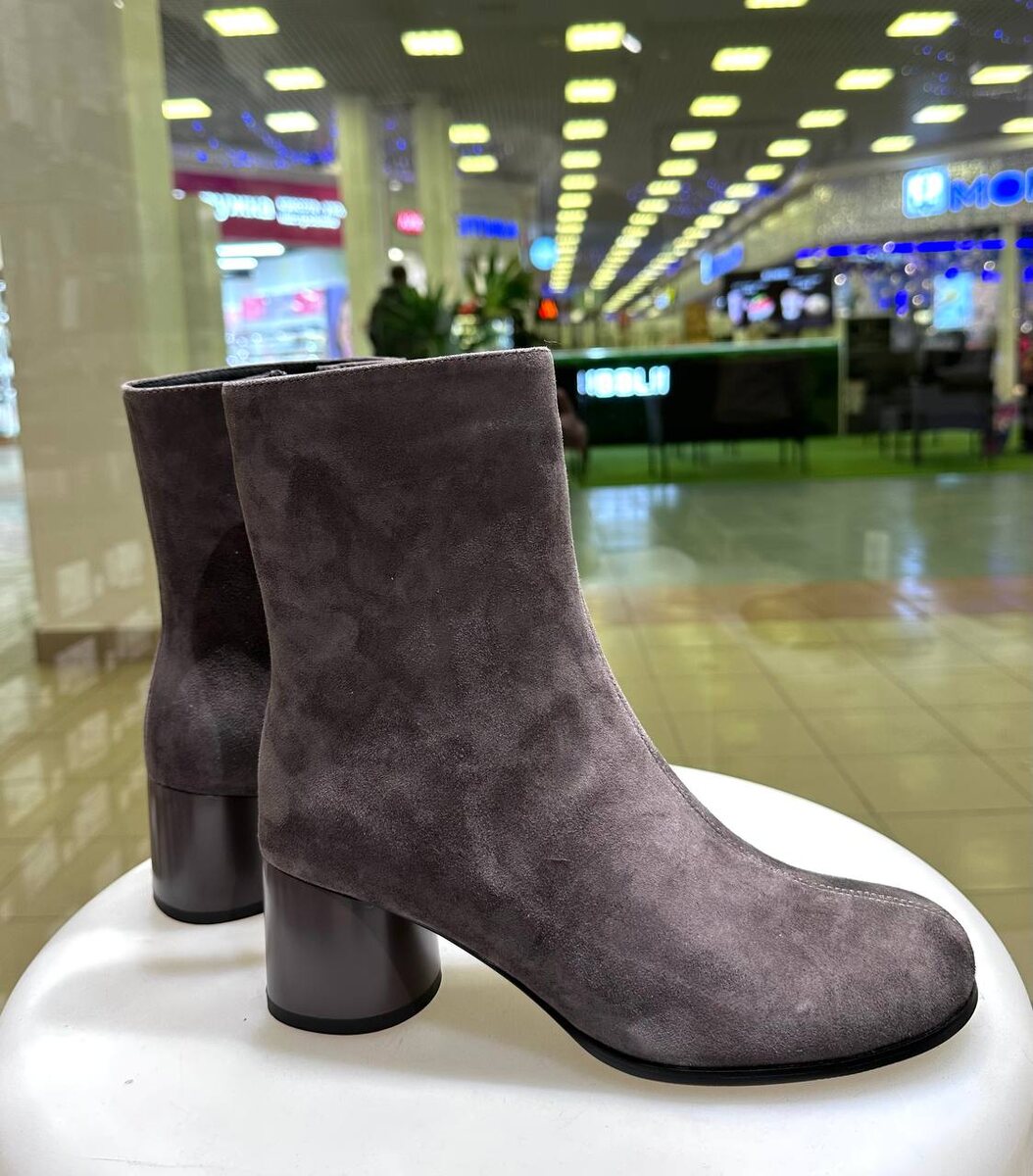 Высокие ботильоны из натуральной замши в сером и черном цвете.