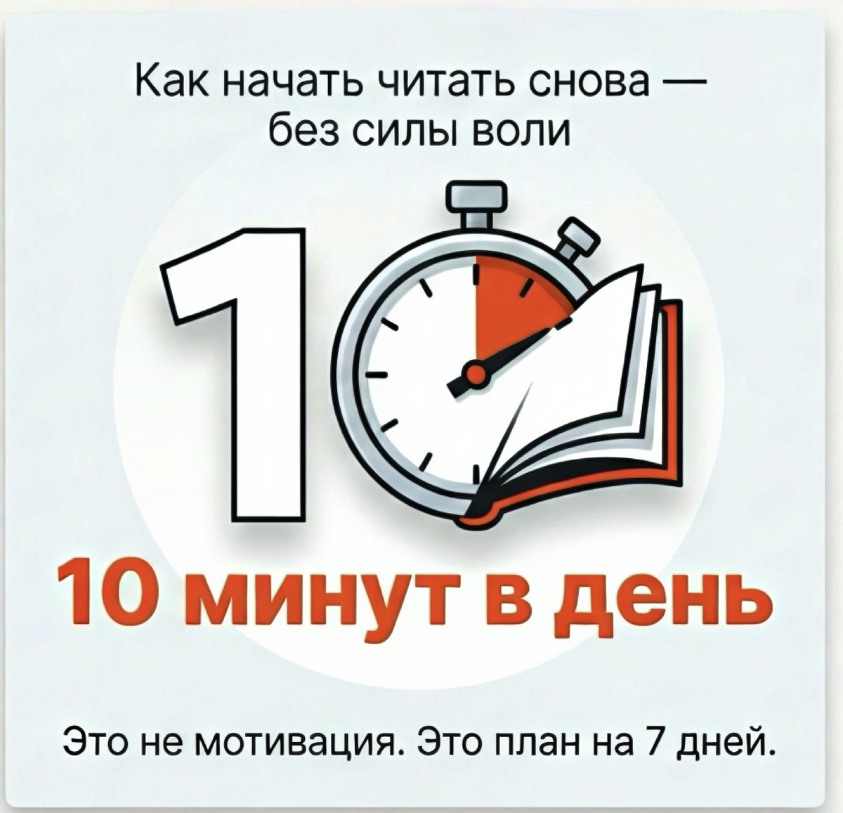 Как мы торгуемся с вечностью Искусство самообмана в эпоху дедлайнов Мы живем в удивительное время, когда для того, чтобы просто сесть в кресло с книгой, нам требуется стратегический план, утвержденный на совете директоров собственной лени. Чтение, которое раньше было убежищем от идиотизма реальности, теперь превратилось в очередной пункт в списке задач где-то между «купить обезжиренный кефир» и «позвонить в ЖЭК». Есть революционное решение: десять минут в день. Не мотивация, а план. Звучит как рецепт от похмелья, но на деле это приговор нашему образу жизни. Мы стали настолько занятыми — или делаем вид, что заняты, — что культура теперь продается нам в дозировке гомеопатических капель. Тирания тайм-менеджмента Десять минут. Вдумайтесь в эту цифру. Это время, которое уходит на то, чтобы выбрать фильтр для фотографии бутерброда в соцсетях. Но когда речь заходит о Толстом или Хемингуэе, десять минут кажутся нам непозволительной роскошью. Авторы этой методики утверждают, что сила воли здесь