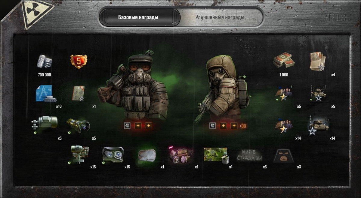 C 28 января по 11 февраля пройдёт коллаборация мира танков со STALCRAFT - Это будет специальная глава Боевого пропуска «Артефакты прошлого» из 50 этапов. - Активировать не нужно, стартанёт сама. - В наградах новый премиум танк Captain, три тематических члена экипажа, новые тематические стили и ещё много всякого по мелочи. - Улучшенный пропуск для главы можно получить за 100 000 свободного опыта или 2 500 голды - Четвёртого члена экипажа можно купить в составе набора.