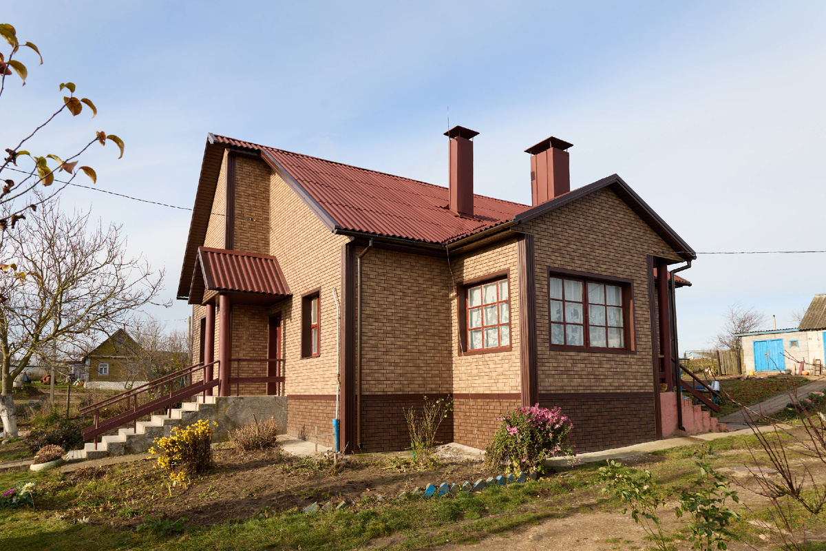 Мы подошли ближе, присмотрелись, и были очень удивлены. Когда мы увидели этот дом впервые, даже не обсуждали. Кирпич. Спокойный, аккуратный, без выкрутасов. Такой дом не кричит, а просто выглядит надёжно. Ну кирпич и кирпич, что тут обсуждать? А потом хозяин сказал фразу, после которой всё поехало. - Это не кирпич. Честно? Мы переспросили. Потому что фасад выглядел именно так, как должен выглядеть кирпичный дом: плотный, собранный, без ощущения «обшивки». Ни полос, ни блеска, ни намёка на то, что перед тобой что-то другое. Оказалось, дом облицован виниловыми фасадными панелями под клинкер. Снизу тёмный, насыщенный цоколь, сверху более светлые стены. Именно из-за этого дом выглядит основательным: низ "держит", верх не давит. Плюс коричневые углы и разделители - мелочь, но без них фасад сразу был бы другим. Хозяева рассказали, что кирпич они действительно рассматривали. И даже почти решились. А потом начались вопросы: фундамент, сроки, погода, дополнительные работы, которые почему-то ник
