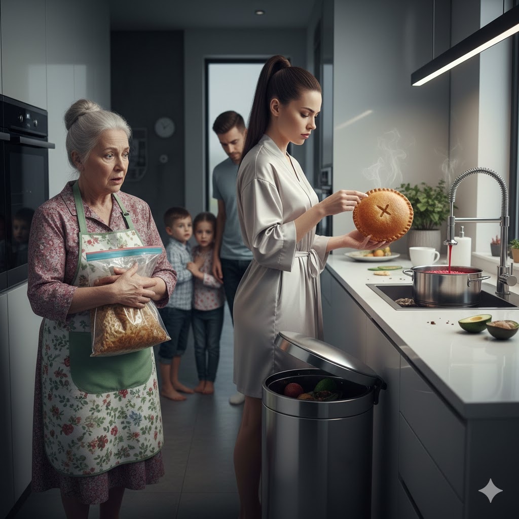 Анна Петровна замерла. Она думала, что ослышалась. Но невестка решительно взяла термосумку, подошла к встроенному шкафу, где пряталось ведро с сенсорной крышкой, и одним движением перевернула контейнер с пирожками. Золотистые комочки, вобравшие в себя тепло ее рук и три часа работы у раскаленной духовки, глухо посыпались на пластиковое дно поверх кофейной гущи и обрезков авокадо.