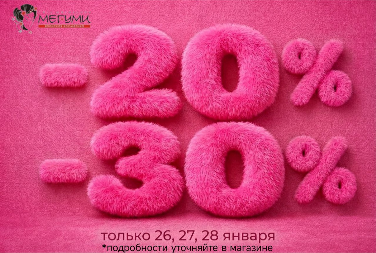 ✨ Всего 3 дня — 26, 27 и 28 января — масштабные скидки на излюбленную японскую и корейскую косметику, бытовую химию и товары для уюта! Покупаете 2 товара — получаете скидку 20% на весь чек 👍🏻 При выборе 3 позиций — скидка увеличивается до 30% 👌🏻 Выбирайте любимые уходовые продукты и товары для дома. Спешите: количество товаров по акции строго ограничено! 📍Ждем вас: ✅Магазин «Мегуми», ТЦ «Вега» (ул. Юбилейная, 40) ✅ТЦ «Русь» (ул. Революционная, 52а)