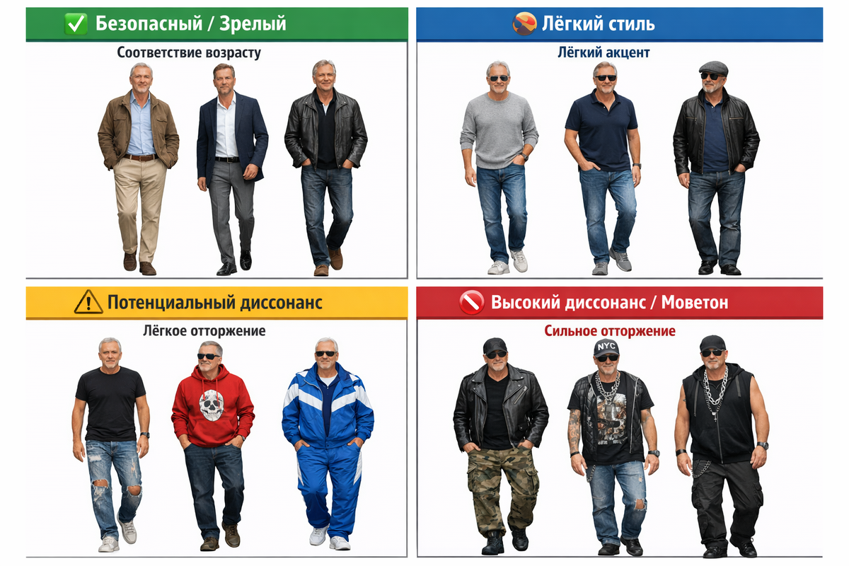 Стиль — это не про моду. И не про «самовыражение» в подростковом смысле. Стиль — это сигнал. Один из самых быстрых и сильных. Он считывается раньше слов, раньше логики, раньше аргументов. Любой человек транслирует сигналы — хочет он этого или нет. Одежда работает как короткий код: за доли секунды она сообщает окружающим, кто перед ними, чего от этого человека ожидать и как с ним взаимодействовать. После 40–50 лет негласная схема восприятия выглядит так: Когда визуальный образ этому противоречит, возникает диссонанс. Отторжение вызывают не конкретные вещи. Не косуха сама по себе и не хаки как ткань. Отторжение вызывает конфликт сигналов: Мозг визави фиксирует это мгновенно. Без морали и без осуждения. Просто как несоответствие. Как шум в сигнале. Именно поэтому возникает ощущение странности, неловкости или необъяснимого недоверия — даже если человек умён, спокоен и говорит разумные вещи. На сцене — особенно у артистов — этот эффект усилен в разы: внимание зрителя сконцентрировано, кажды