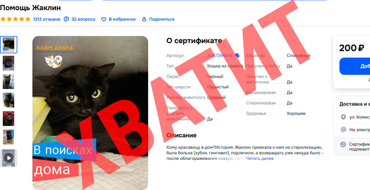 Захожу я на озон, чаще для того, чтобы найти конкретный товар, но иногда я вижу в ленте интересные книги или другие товары. Что ни говори, а рекомендательные механизмы на основе искусственного интеллекта внедрили уже все, кому не лень. И маркетплейсы не исключение. Но в последнее время, мне все чаще стали попадаться объявления, которые каким-то способом (скорее всего за деньги) обходят рекомендательные механизмы и навязывают помощь животным. Нет конечно, я люблю животных. Но кому я помогаю? У объявлений по несколько тысяч отзывов, а таких объявлений десятки, если не сотни тысяч. Умножьте на 200. За эту сумму можно любого котика свозить в каждую клинику мира по очереди чартерным рейсом. Но объявления есть, их не удаляют после сбора нужной суммы. Соответственно, у меня складываются подозрения, что помогаю я вовсе не котикам и пёсикам, а вполне себе конкретным людям. Я не вижу конкретного кота или собаку, я вижу лишь картинку на экране. Вообще-то объявление собирает деньги не для одного