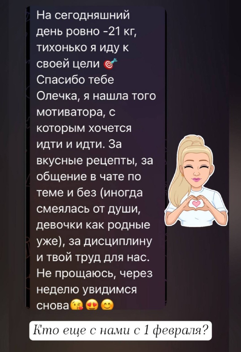 ! Уже в это воскресенье! Первый день подготовительный! ❣Старт 1 февраля (чат формируется до назначенной даты курса) Первый день подготовительный! 💰 Стоимость участия одного курса: 1799р 🍒VK - vk.com/olgaf2209 ( написать мне лично) 🍒Группа в VK - vk.com/ofdiet2022 🍒TG - t.me/Olqaf2209 🍒Пиши в ЛС сообщества "Хочу на курс ПРАВИЛЬНОГО ПИТАНИЯ" 🍒Программа курса 21 день! Если в 2026 году у тебя есть цели по: — здоровью и энергии; — налаживанию питания; — работе со стрессом и восстановлением; — выработке новых устойчивых привычек; — тому, чтобы наконец перестать откатываться — то логичнее времени начать, чем сейчас, просто нет. ❣ #худем#похудение #похудела #мотивация#нутрициолог #здоровье#правильноепитание #здороваяеда