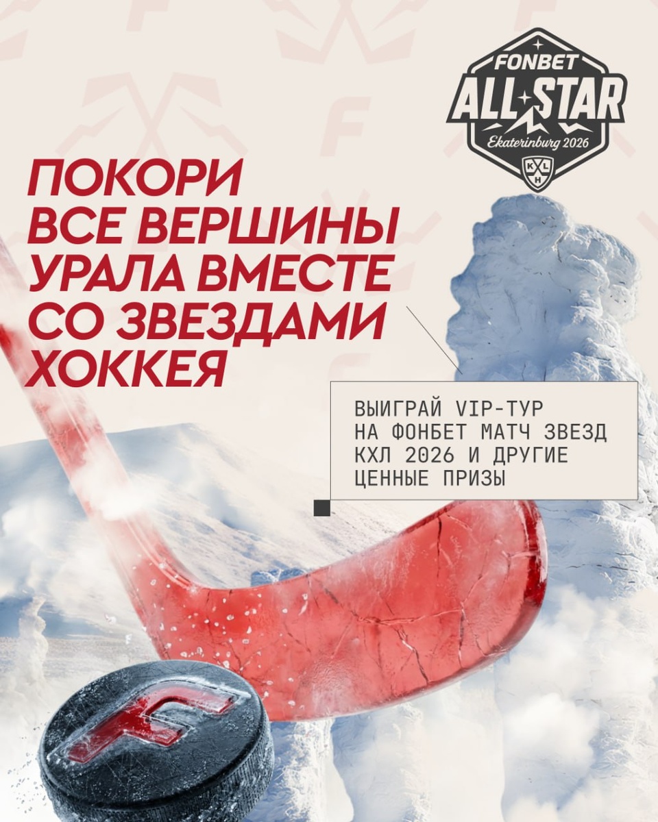 С 6 по 8 февраля звездный уикенд пройдет среди гор Урала, в Екатеринбурге. Вы можете стать частью грандиозного события и покорить новые вершины вместе с игроками КХЛ и МХЛ. Как это сделать? Играйте в «Горный хоккей», делайте прогнозы, набирайте высоту и выигрывайте: VIP-тур на ФНЗХ, гаджеты, мерч и другие ценные призы! Покорите высоту первых вместе с FONBET и КХЛ.