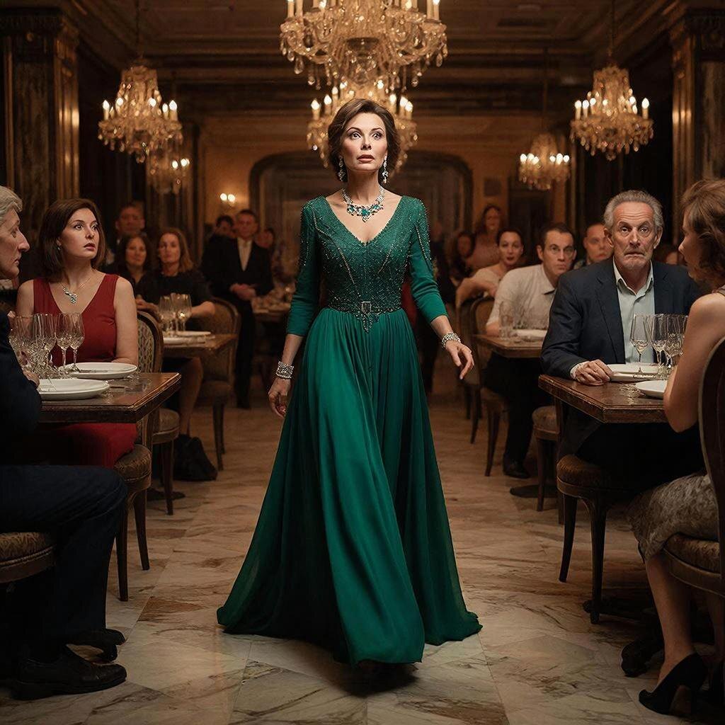 Я шла через зал, чувствуя, как изумрудный шёлк струится по ногам. Платье сидело идеально, подчёркивая каждую линию. Оно не кричало. Оно говорило. Тихо, но очень чётко.