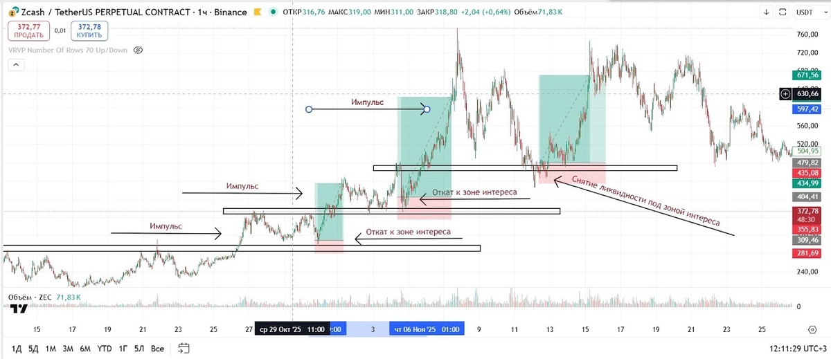 Правильный вход — дождаться отката к зоне поддержки или ключевому уровню. На дневках это может быть откат 30-50% от импульса, на младших таймфреймах — до ближайшей зоны интереса. Терпение окупается лучшей точкой входа и адекватным соотношением риск/профит.