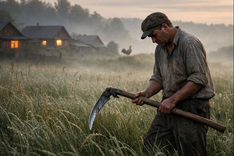 «Красавица» — это он про траву сказал. Про косу — не сказал бы. Коса у него была старая, ещё от отца осталась, рукоять гладкая, натёртая руками так, что будто лаком покрыта. Раньше эта коса пела: раз — и полоса ложится, два — и ещё. Но теперь… теперь она будто обижалась.