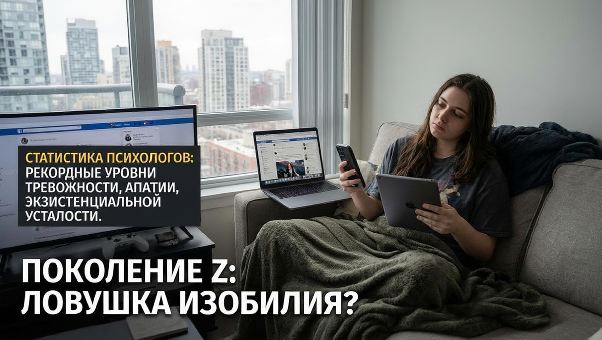 У них есть всё: мир в кармане, свобода самовыражения и технологии, о которых мы мечтали в детстве. Но статистика психологов и социологов рисует шокирующую картину: поколение Z (зумеры) демонстрирует рекордные уровни тревожности, апатии и экзистенциальной усталости. В чём подвох? Почему изобилие обернулось ловушкой?