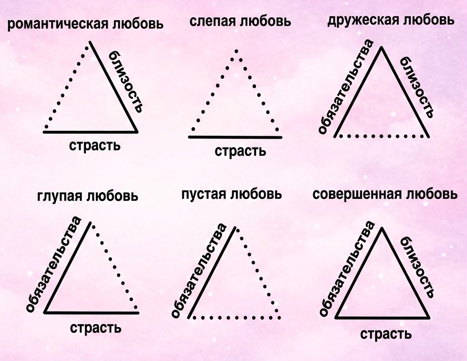 Нет плохих типов любви, есть разные комбинации. Романтическая без обязательств — это не «ненастоящая». Дружеская без страсти — не «мёртвая». Знать свой тип — значит понимать, где вы сейчас и куда можете двигаться. Совершенная любовь возможна, но она не падает с неба — ее создают. Вместе и день за днем.
