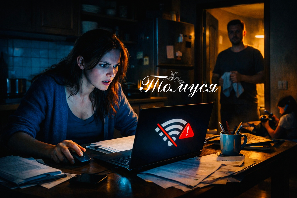 В тот вечер я сидела на кухне, обложившись документами и синим светом ноутбука, когда ровно в восемь вечера экран предательски мигнул значком отсутствия сети.