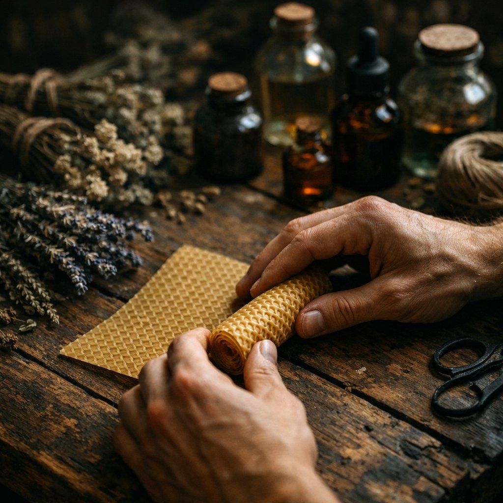 Ведьмина избушка. Части 2 и 3. Наше путешествие начинается с подготовки важных ингредиентов: Возьмите персиковое масло (1 чайную ложку), — это будет ваше базовое масло, — и добавьте к нему 10 капель эфирного масла вербены. Размешайте масляную смесь. Теперь возьмите одну свечу из натурального пчелиного воска (будет прекрасно, если вы изготовите её сами), можно брать натуральный пчелиный воск или лист вощины. Напишите на вашей свече: "место силы", используя для этого нож или ритуальный серп. После натрите масляной смесью центры ваших ладоней, а также вашу свечу. Возожгите свечу. Возожгите благовоние. Аромат должен вам нравится. Расслабьте свое тело и закройте глаза. Отпустите все заботы из своей повседневной жизни, — расслабление очень важно для данной практики. Если вы практикуете за городом, затопите печь или камин и сядьте рядом с ним, чтобы тепло живого огня касалось вашего тела. Сделайте глубокий вдох-выдох и закройте глаза… Вспомните лес, в котором вы бывали, почувствуйте связь