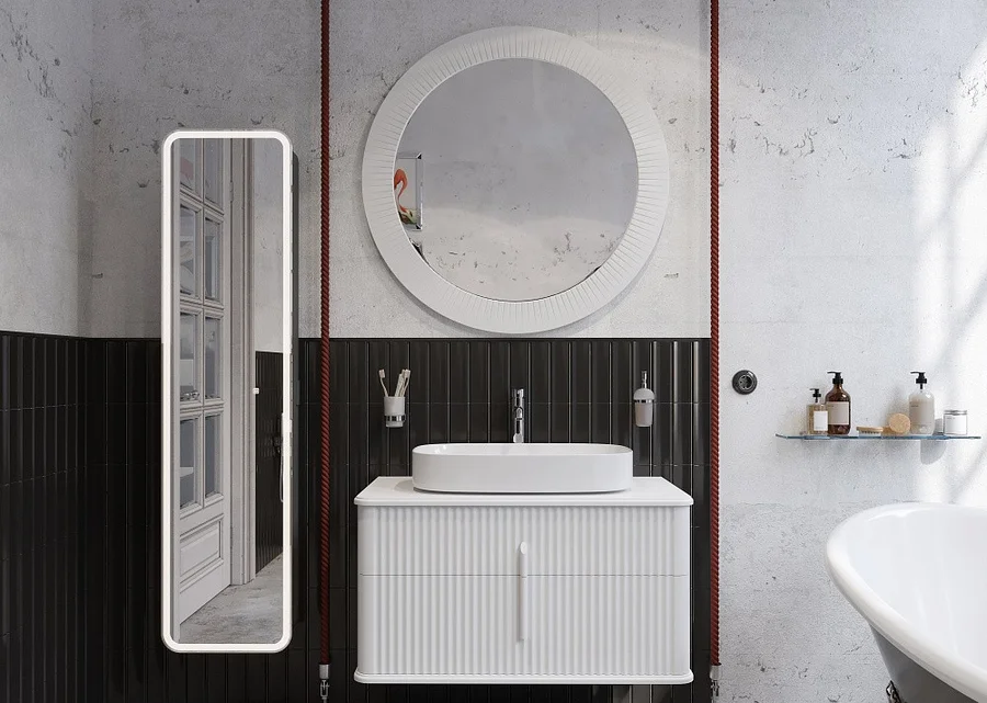 Мебель с монтажом: ванная — 70 000 руб., тумба с зеркалом — 50 000 руб., унитаз со скрытым бачком — 25 000 руб.