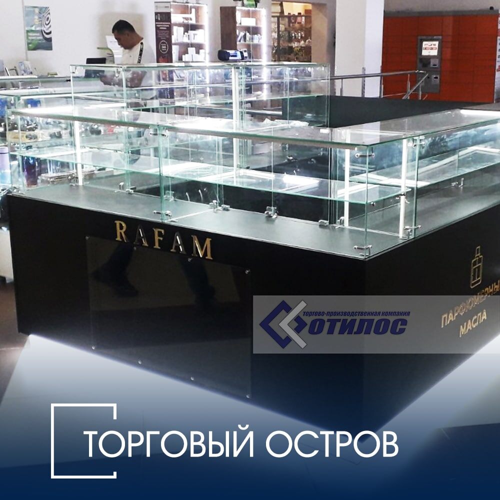 Островок косметики — витрины с подсветкой, зеркала, тестеры. Презентабельный вид обязателен. Площадь 8-15 кв.м.