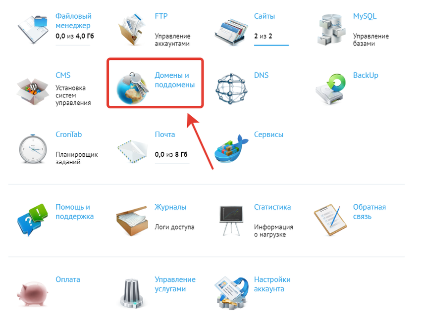 При добавлении домена можно: