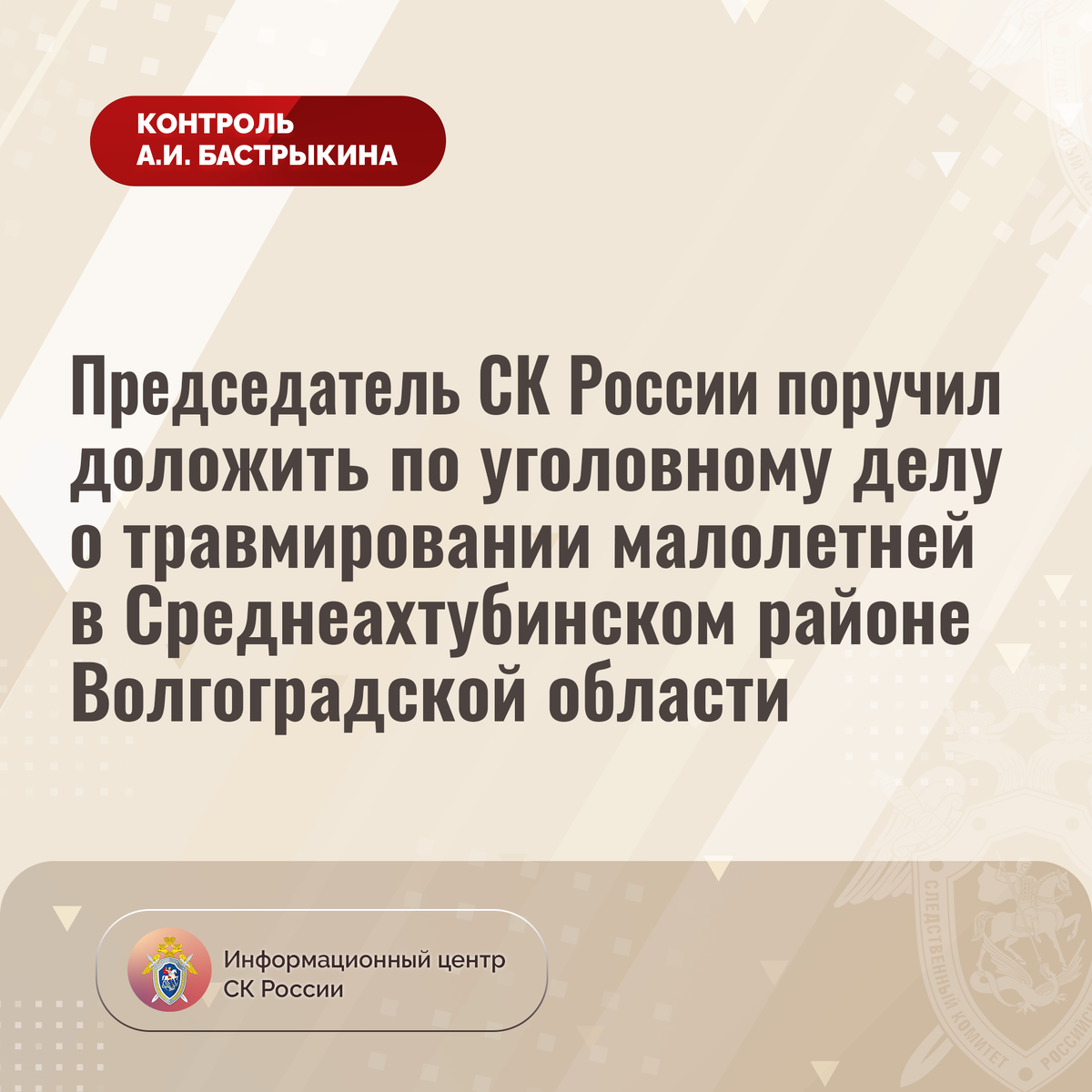 Председатель СК России поручил доложить по уголовному делу о травмировании малолетней в Среднеахтубинском районе