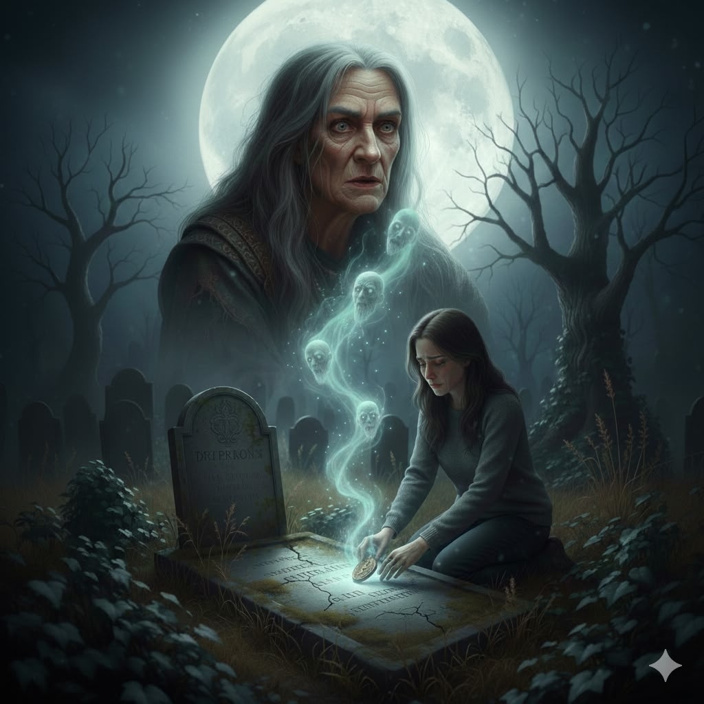 Анна, дрожа от страха, но движимая отчаянной надеждой, отправилась на кладбище. Луна освещала старые, покосившиеся надгробия, создавая жуткие тени. Она нашла нужную могилу, давно заросшую травой и мхом. Встала на колени, положила амулет и, закрыв глаза, всем сердцем попросила прощения за свою прапрабабушку, за всех, кто страдал из-за этого проклятия. Она чувствовала, как слезы текли по ее щекам, но в них не было отчаяния, лишь глубокая скорбь и желание искупить.