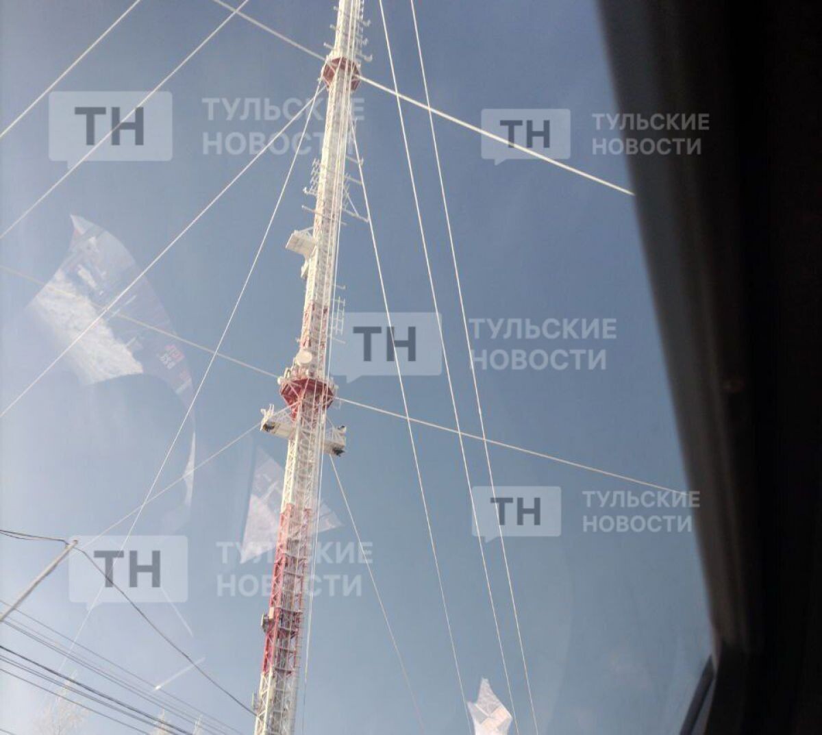 В Тульской области телебашня в Скуратово покрылась ледяными наростами
