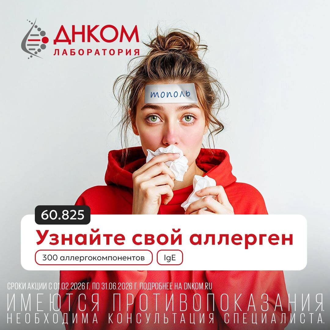 на новогодние угощения и не только. Если симптомы не проходят неделями, стоит задуматься – возможно, это не вирус, а иммунный ответ на скрытые аллергены. 🔬 Точная диагностика с ALEX2 60.825 Аллергочип ALEX2 – это современное решение для выявления до 300 аллергенов и общего иммуноглобулина E за одно исследование: ✔️ Пищевые, пыльцевые, бытовые аллергены, ✔️ Безопасно для детей (не требует кожных проб), ✔️ Определяет перекрестные реакции (например, между полынью и специями). ❗️С 01.02.2026 по 31.06.2026 г. исследование доступно по сниженной цене. Не дайте аллергии испортить зимние праздники! Узнайте свой триггер и избегайте неожиданных реакций. С ДНКОМ здоровым быть легко! ❤️ Для записи в клинику: @integritasclinicc 8 (499) 641-70-50 info@inclinica.ru г. Москва, ул. Верхняя Радищевская, д. 12/19с1