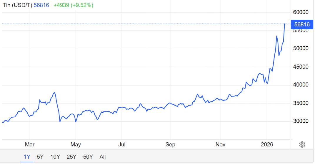 Скромный металл внезапно вырос в цене, обгоняя золото, олово за год подорожало более чем на 88% из-за роста спроса
