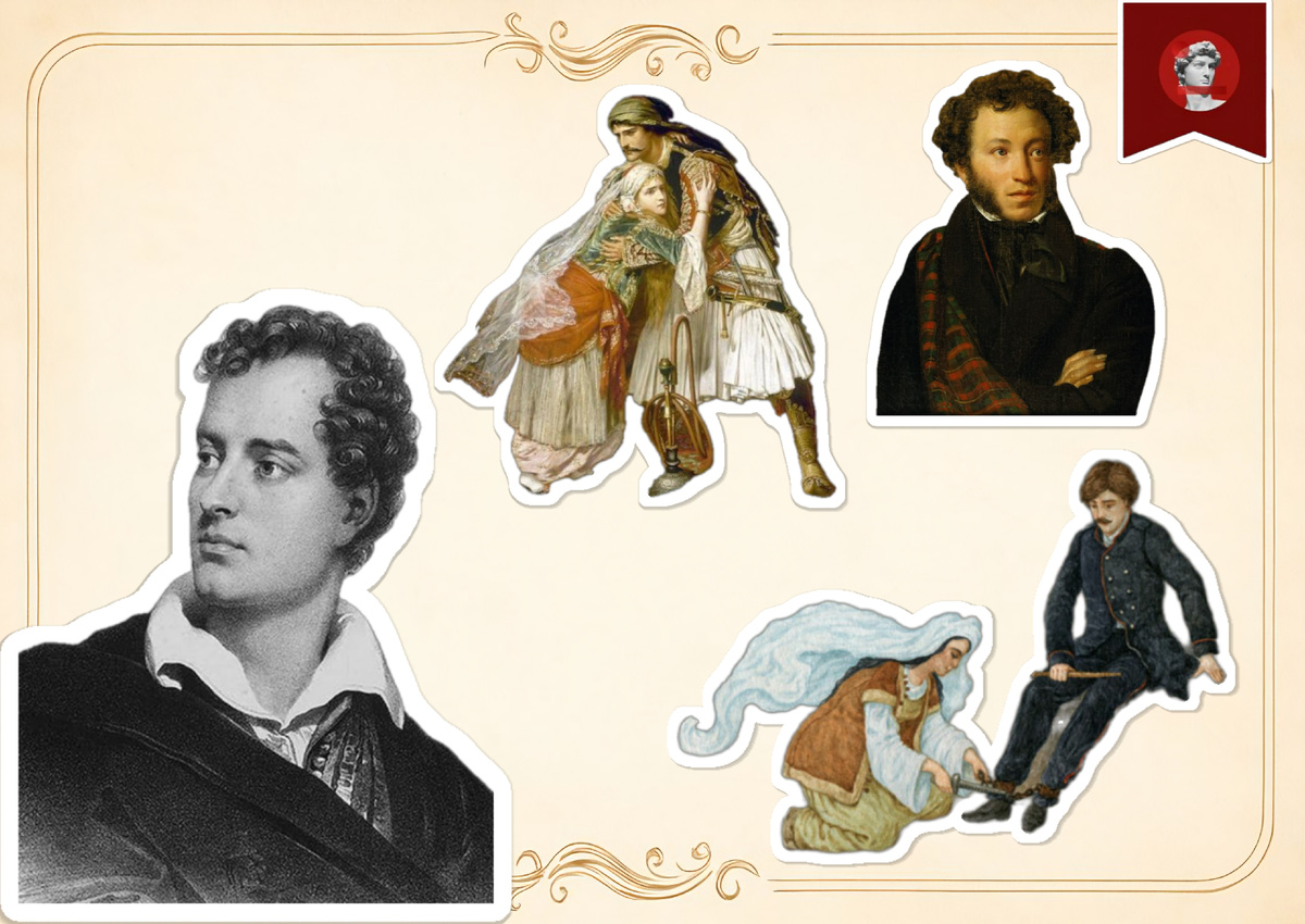 Байрон подарил литературе сильного героя с его внутренними переживаниями, которые доминируют над действием поэмы. Именно Байрон создал экзотические картины Востока, его природу, обитателей и соответствующие этой обстановке сюжетные ходы — битвы, похищения, переодевания, проделки разбойников. Путешествие на Восток вдохновило Байрона на создание цикла поэм. Они повторяют одну сюжетную схему. В них — три основных действующих лица: герой, его возлюбленная и его противник. Под влиянием Байрона появились пушкинские поэмы «Кавказский пленник», «Бахчисарайский фонтан», «Цыганы». Как и английский поэт, Пушкин показывает романтическую, приключенческую обстановку. И лагерь разбойников, и кочующие цыгане, и дикие племена свободных черкесов, и гарем крымского султана... Особенно похожи поэмы «Кавказский пленник» Пушкина и «Корсар» Байрона. Вплоть до развития отношений главного героя-пленника и влюбленной в него красавицы. Девушка открывает герою свою любовь и узнает о том, что он любит другую.