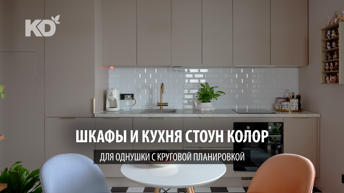 Даешь бой скуке и стандартным решениям! Это девиз Кристины Петровой — хозяйки этой яркой и контрастной квартиры. Она сочетала пыльно-розовые и -голубые стены, шашечки на полу и мебель от КД. Взболтала. И получила идеальное гнёздышко для себя, своего кота и пары попугаев-неразлучников. Перед вами наша легенда Стоун Колор. Модель, которая каждый год подтверждает, что список бестселлеров КД покидать она не планирует. Её приглушенные кашемировые фасады привносят баланс в смелую цветовую палитру квартиры. А в качестве деликатных акцентов выбрана фурнитура под матовое золото. Прямая кухня до потолка позволила максимально задействовать пространство — без визуального шума и случайных деталей. Благодаря этому стена выглядит как цельная монолитная конструкция, в которой всё подчинено логике и удобству. Многочисленные зоны хранения аккуратно скрыты за матовыми фасадами и не перегружают интерьер. В центре внимания насыщенная жизнь хозяйки, а не атрибуты быта! Большая рабочая поверхность идеально