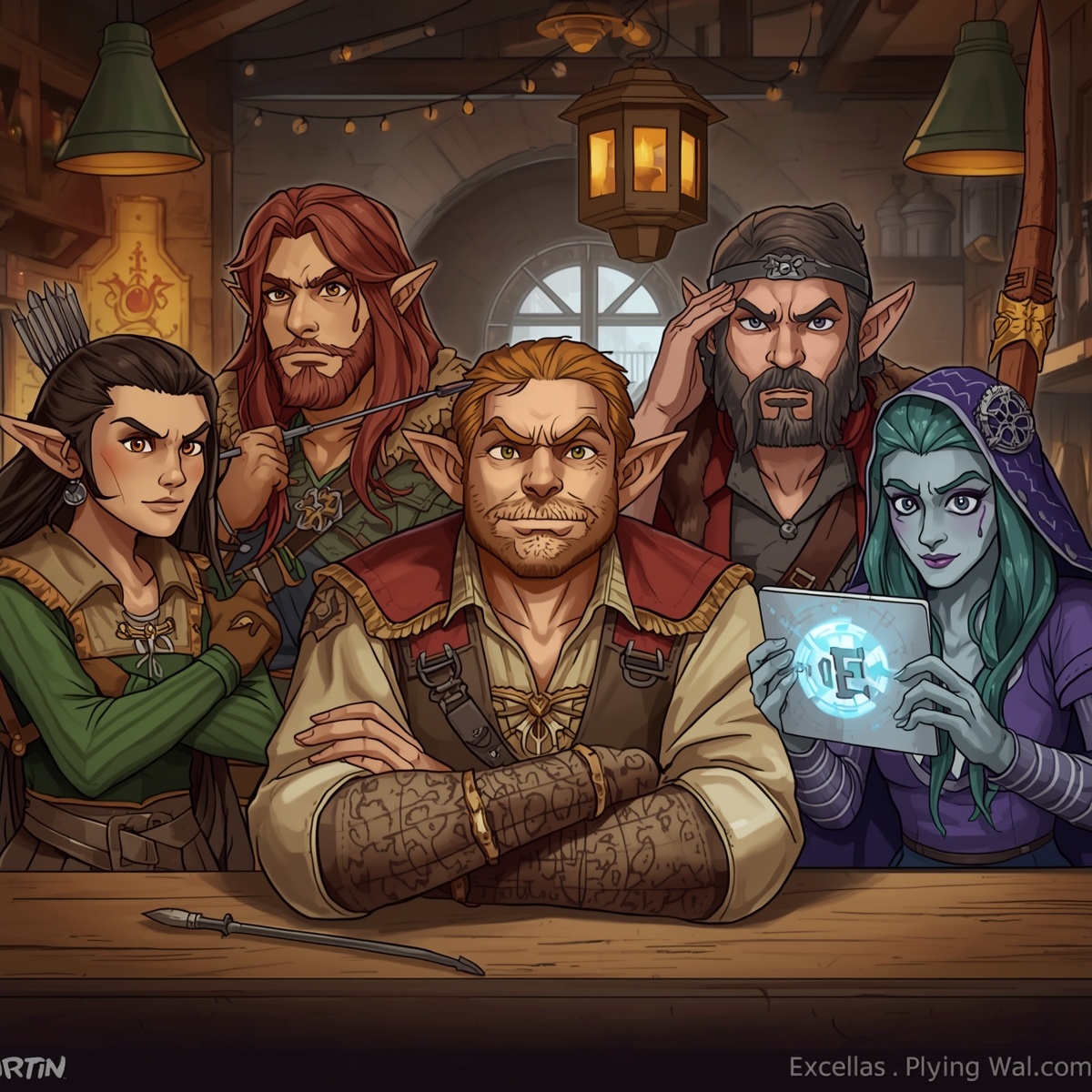 · Громил Каменное Темя, гном-воин. Классический боец с седой бородой и двуручным топором. Проблема: хроническая мигрень и непереносимость глютена, что в мире, где питаются в основном хлебом и мясом, превращает любого поход в гастрономический кошмар. Его боевой клич: «За свободу, честь и… ой, у меня голова! Кто-нибудь, дайте таблетку!»