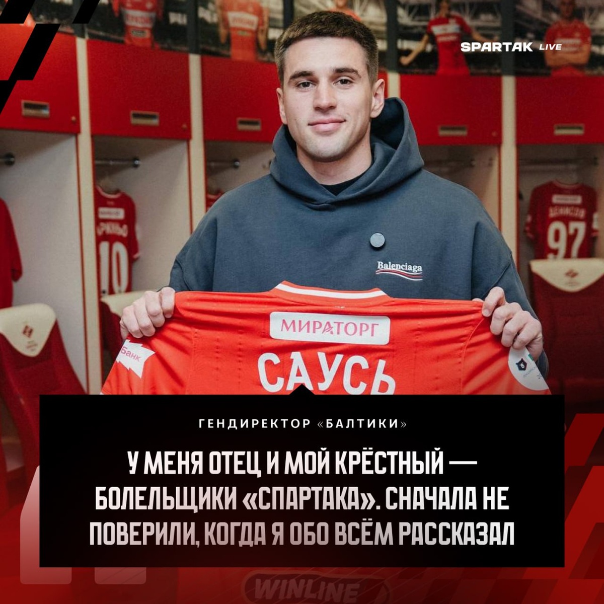 » На Youtube-канале вышло первое интервью новичка «Спартака» (смотреть здесь) — Ты играл «десяткой», вингером, латералем. На какой позиции тебя видят в «Спартаке» при схеме с четырьмя защитниками? — Да, сказали, что видят меня крайним защитником. Вот, я, в принципе, не против, ответил: «На какую позицию поставите, там и буду играть». Сказали, что рассматривают меня правым защитником. Я не против. Мне удобно играть там, где я могу приносить пользу команде. — Какие отреагировали твои семья и близкие? — Сказали, что это также хороший вариант. У меня отец и мой крёстный — болельщики «Спартака». И сначала не поверили, когда я обо всём рассказал, у них были такие смешанные чувства, что папа просто молчал в трубку. Но потом, на следующий день, мы с ним созвонились, он сказал, что любой выбор поддержит, но считает, что нужно идти пробовать. Подписывайтесь:🚀@spartak_live