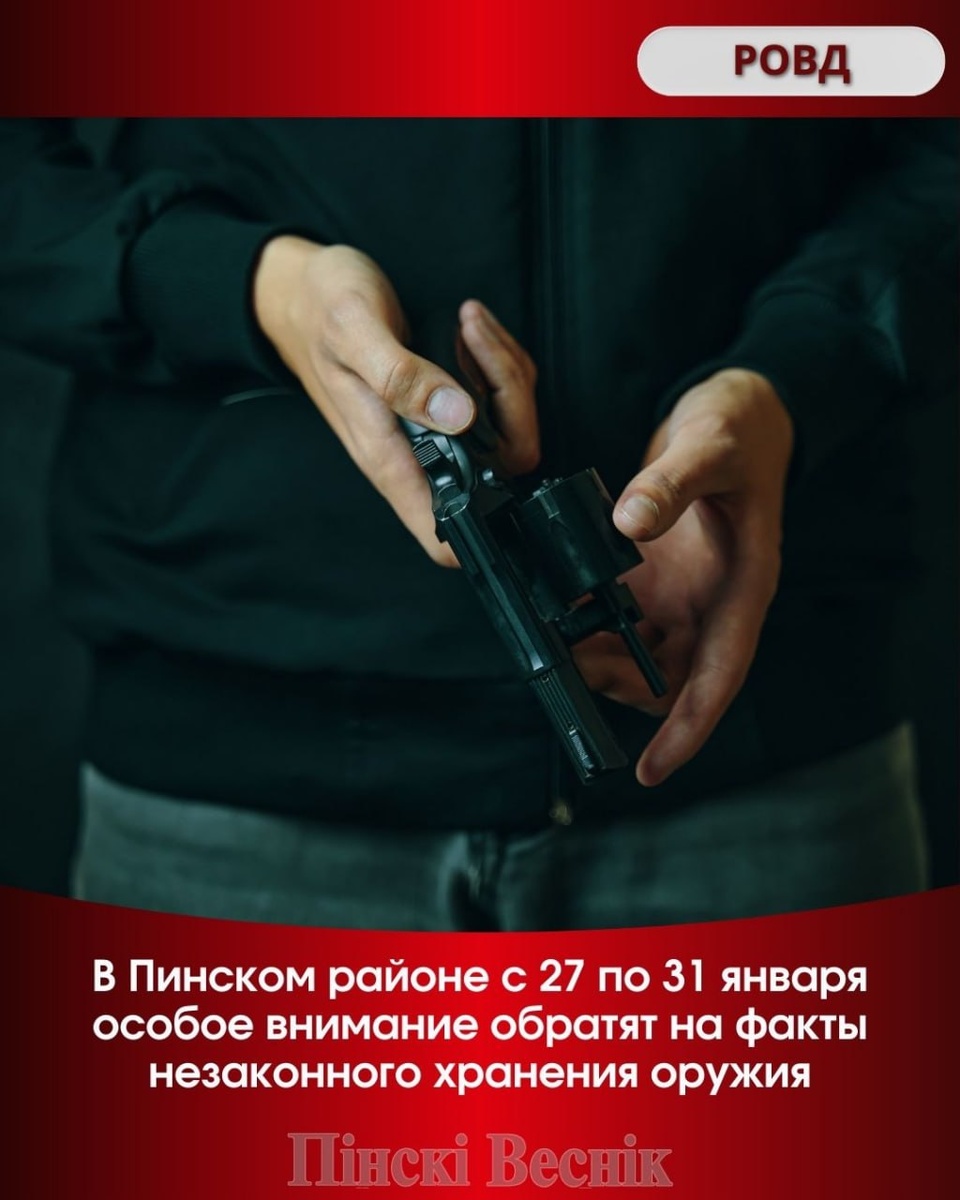 ✅На территории Пинского района c 27 по 31 января 2026 года будут проводиться мероприятия по противодействию незаконному обороту оружия