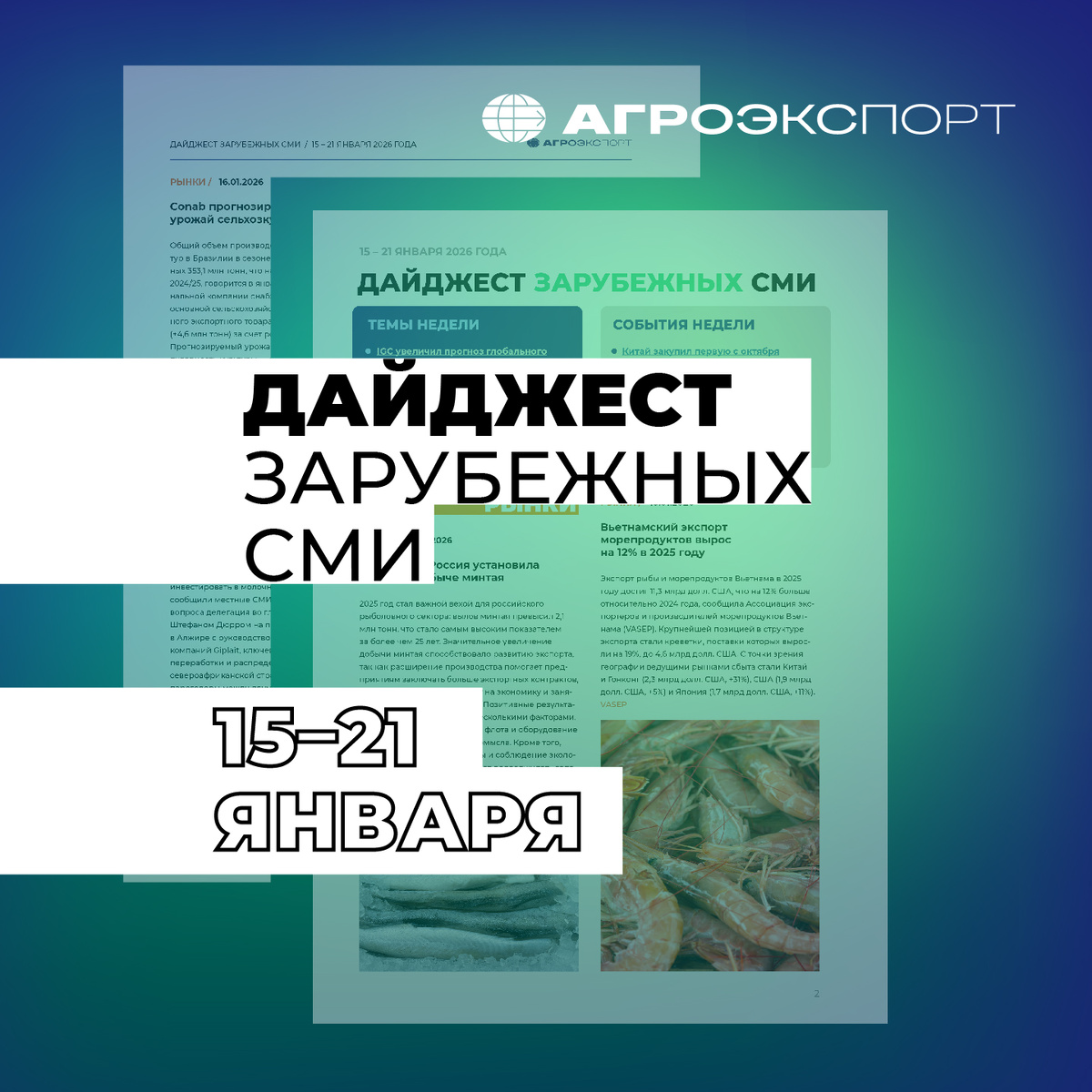 Дайджест зарубежных СМИ от «Агроэкспорта» (15 – 21 января 2026 года)