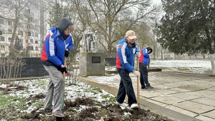 Участники республиканской патриотической акции Крымский студенческий десант Республики Крым «#ТрудКрут» провели работы по благоустройству одного из самых значимых и трагических мемориалов города-героя – Братской могилы партизан и мирных жителей 1943–1944 годов в городе Керчь.