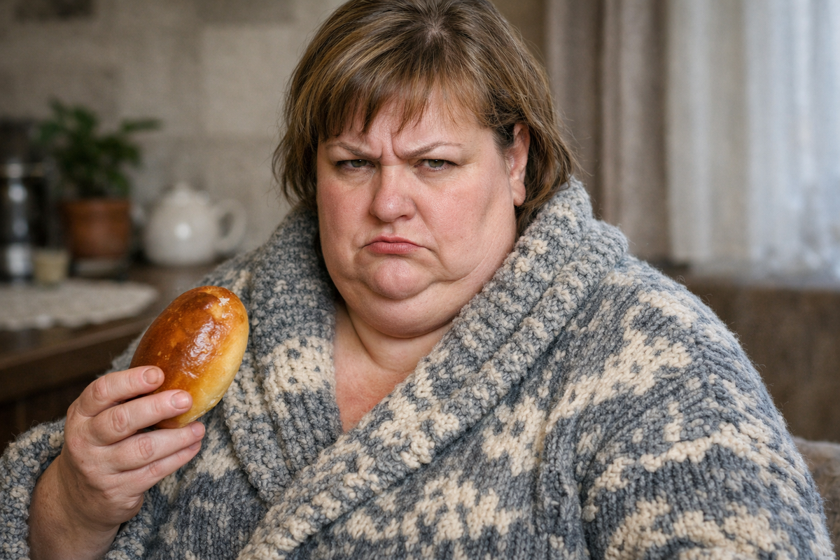 — Вот и нажралась на всё готовое! — он ткнул пальцем в её сторону. — Думаешь, я не вижу? Пирожки таскаешь со сковородки, сама первая ложку в кастрюлю суёшь!