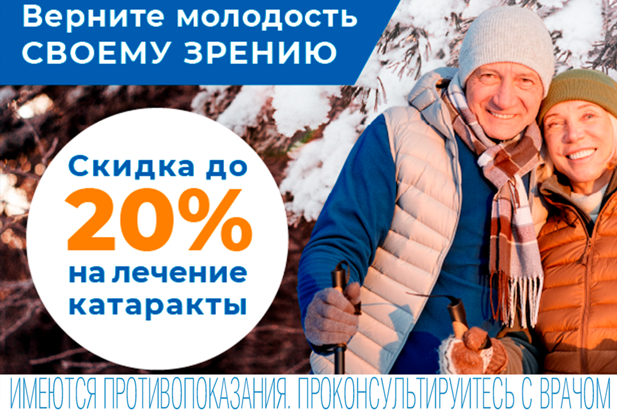 Яркие краски, чёткость деталей, ощущение лёгкости и свободы — всё это возвращается вместе с хорошим зрением. Только с 1 по 28 февраля 2026 года в клинике «Эксимер» действует специальное предложение: Скидка до 20% на лечение катаракты! — При операции на втором глазу в течение 1 месяца после первой — скидка 20%.
