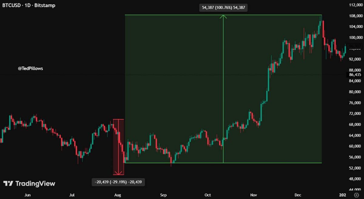 Это продолжение к теме валютных интервенций и того, как рынок на самом деле реагирует на такие события. На прошлом вмешательстве в йену рынок показал очень характерный паттерн. Сначала: — резкое укрепление йены — unwind кэрри-трейда — бегство в кэш — давление на все риск-активы Итог: биткойн за одну неделю упал почти на –29%. Большинство в этот момент: — испугались — зафиксировали убытки — решили, что «что-то сломалось» Но дальше произошло главное. Когда первичный шок был переварен: — ликвидность вернулась — рынки поняли, что это не кризис, а управляемый стресс — центробанки показали готовность вмешиваться И биткойн сделал то, что он умеет лучше всего: +100% рост после паники. Что здесь важно понять инвестору. Интервенции по йене — это не «медвежий сигнал» для биткойна. Это ликвидностный стресс-тест. Сначала система сжимается. Потом — разжимается с удвоенной силой. Рынок не наказывает за риск. Он наказывает за отсутствие терпения. К чему это ведёт сейчас. Если мы снова уви